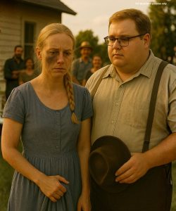 Lorsque le bus s’arrêta en tremblant devant une modeste ferme, la poitrine de Clara se serra. Elle descendit, mince et pâle dans sa robe simple. Dans la cour se tenait un homme trapu aux cheveux blonds et aux lunettes rondes qui lui glissaient sur le nez. Sa chemise tirait sur les boutons, ses joues rougissaient facilement, l’image même d’un homme qui appartient à la terre.